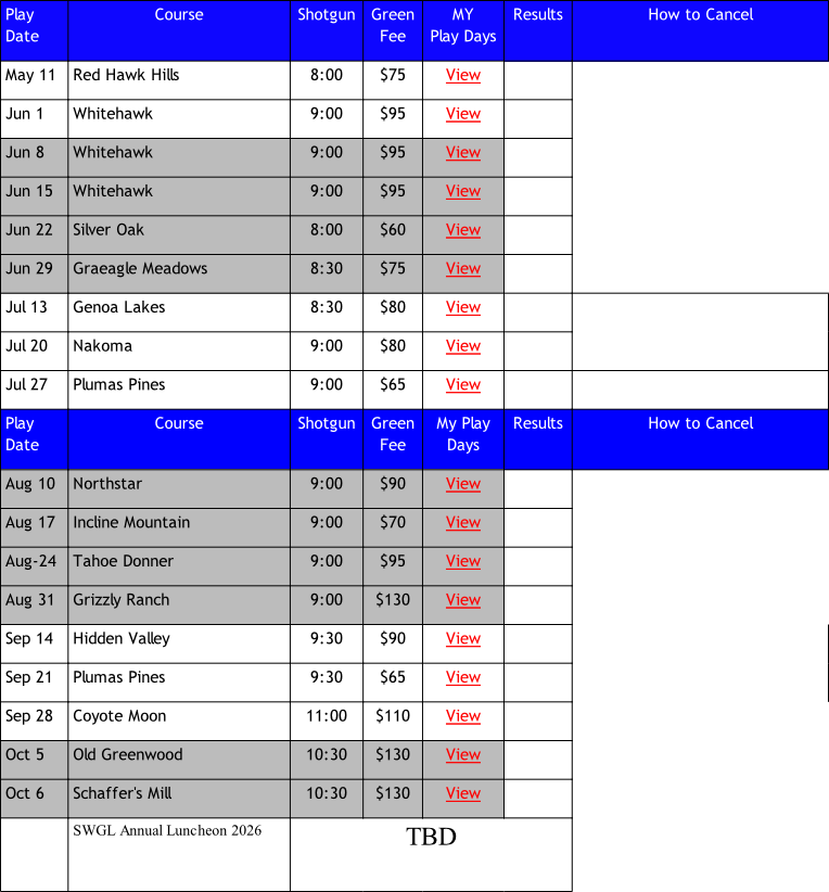 2026 Play Schedule